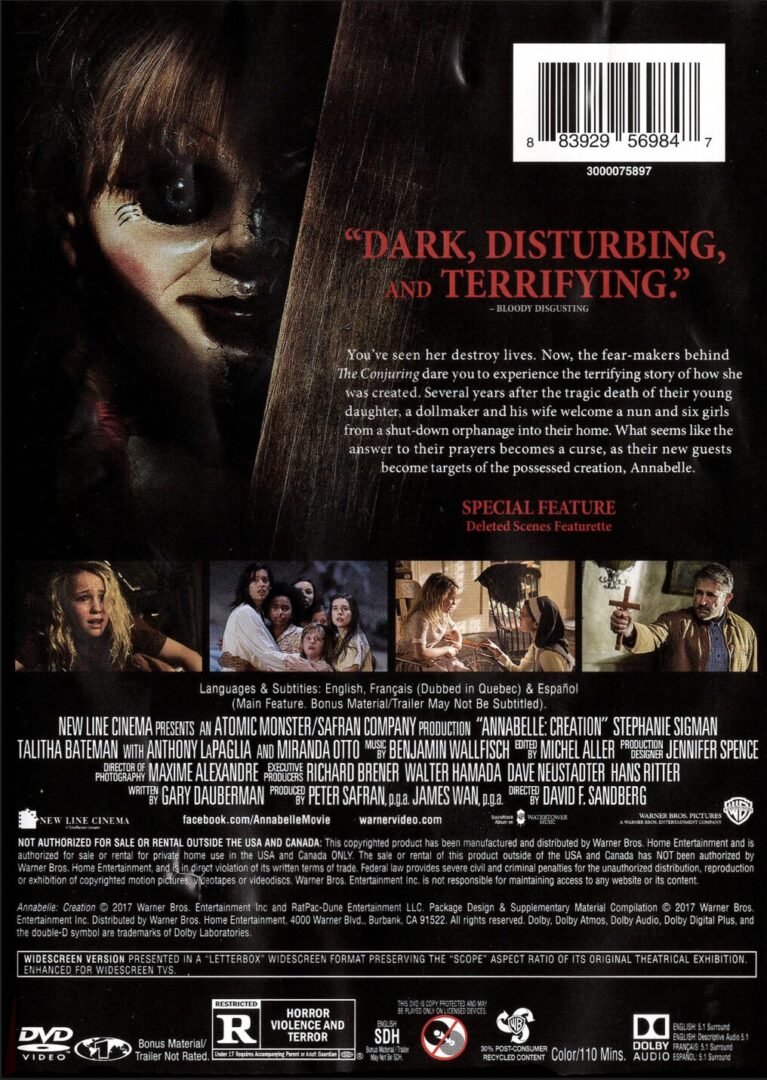 Annabelle: Creation (DVD, 2017, Warner Bros.) Custom Cover Preowned