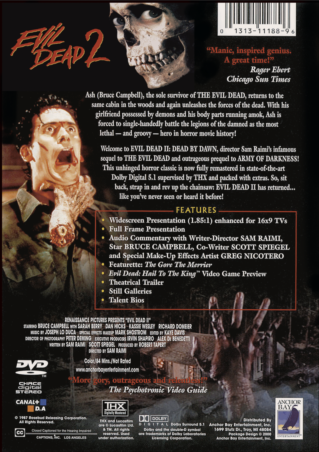 Packed with outrageous special effects, absurdly over-the-top gore, and an unforgettable blend of slapstick humor and heart-stopping horror, Evil Dead 2 is a must-have for horror fans, cult movie lovers, and anyone who enjoys a good scare with a side of laughs.