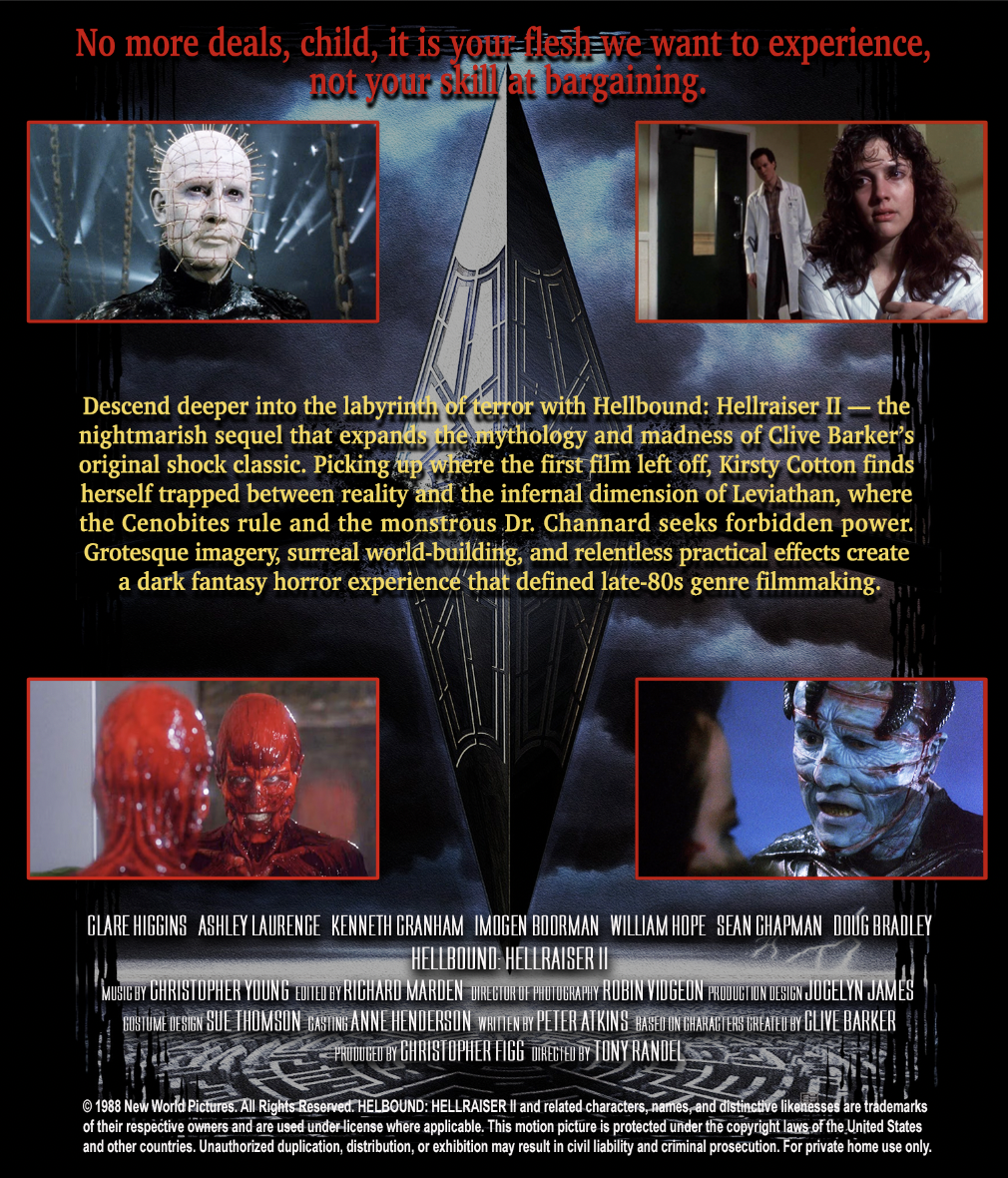 Hellbound: Hellraiser II (Custom Blu-ray Cover, New World Pictures) Cover Only, No Movie