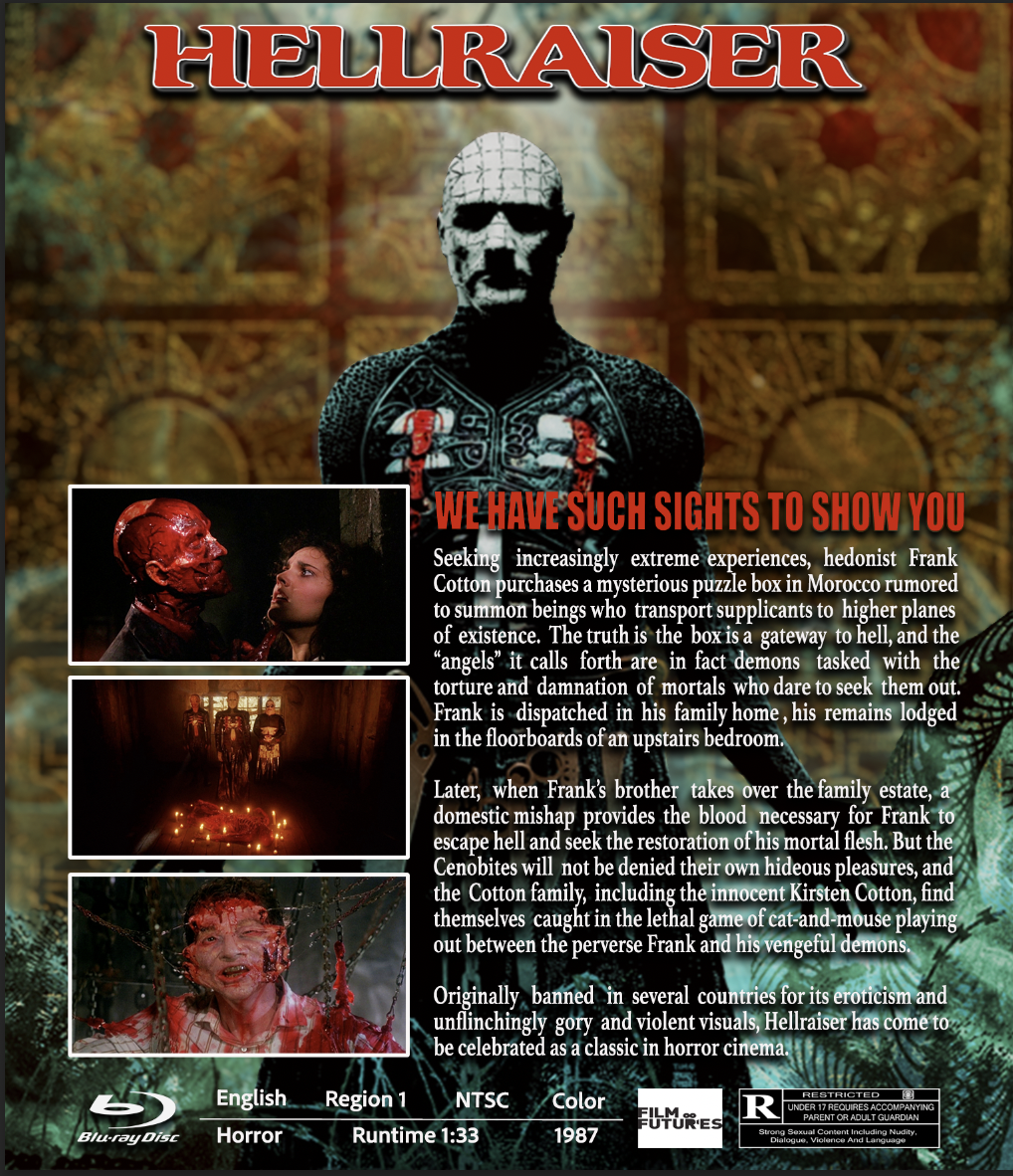 Hellraiser (Blu-ray Custom Cover, 1987, New World Pictures) Art and Case Only, No Movie