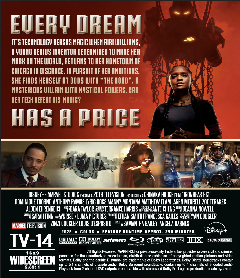 Dominique Thorne stars as Riri Williams in Ironheart, Marvel Studios’ bold new series that follows the rise of a young genius who builds her own suit of armor to rival Iron Man himself. After creating a revolutionary piece of tech that draws the attention of both heroes and villains, Riri finds herself entangled in a battle that tests her intellect, courage, and heart. Set in the aftermath of Black Panther: Wakanda Forever, the series blends cutting-edge action with emotional storytelling as Riri forges her own legacy in the Marvel Cinematic Universe.