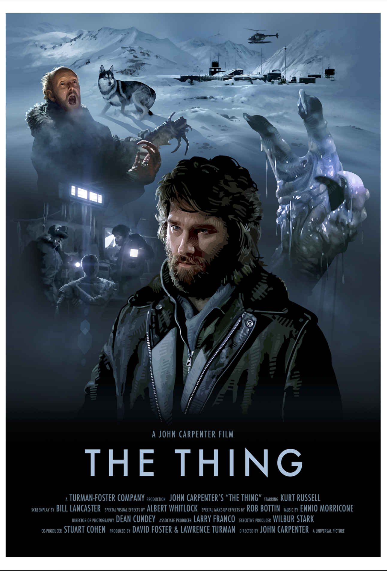 This striking modern reinterpretation of John Carpenter’s The Thing explodes with bold, high-impact color and an icy blue palette that dominates the composition. Rendered in a vivid, painterly digital style with heavy brushstrokes, the artwork evokes both the isolation of the Antarctic setting and the chaos of the creature’s terrifying transformations. The stylized depiction of MacReady and the surrounding figures captures the film’s tension between humanity and horror, all within a stunning digital canvas that feels alive with motion and frost.