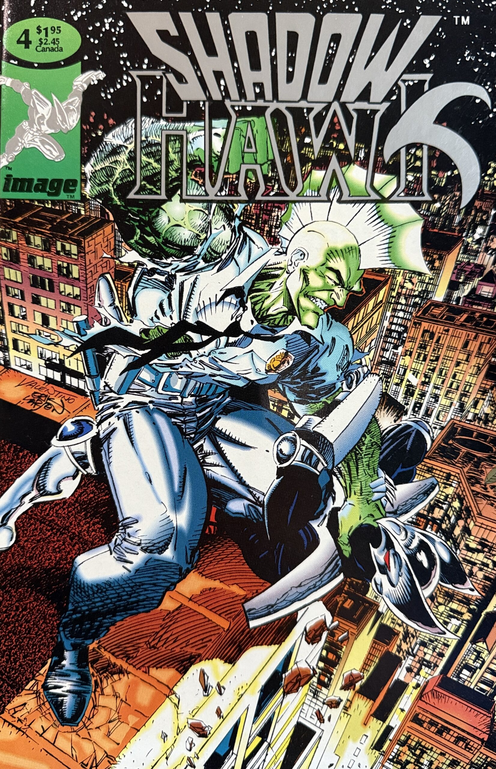 Shadowhawk Volume 1 is the title for the first four-issue miniseries by Jim Valentino for Image Comics, featuring Paul Johnstone as the titular vigilante known for his violent methods, including breaking the backs of criminals. Created amidst the initial Image Comics launch, it showcases a classic style with a raw, action-oriented narrative, a distinct art style that includes computer coloring, and a team that credits Valentino’s wife Diane for lettering and Eric Stephenson as editor. The series was released in 1992 and concludes with an epic confrontation against Savage Dragon, with the story of Shadowhawk’s origin and other adventures appearing in a trade paperback collection titled Shadowhawk Chronicles Vol. 1.