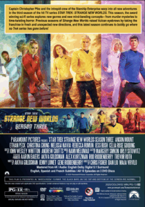 Captain Christopher Pike and the intrepid crew of the Starship Enterprise warp into all new adventures in the third season of the hit TV series STAR TREK: STRANGE NEW WORLDS. This season, the award winning sci-fi series explores new genres and new mind-bending concepts– from murder mysteries to time-twisting horror. Previous seasons of Strange New Worlds raised Vulcan eyebrows by taking the franchise in fresh and unexpected new directions, and this latest season continues to boldly go where no Trek series has gone before!